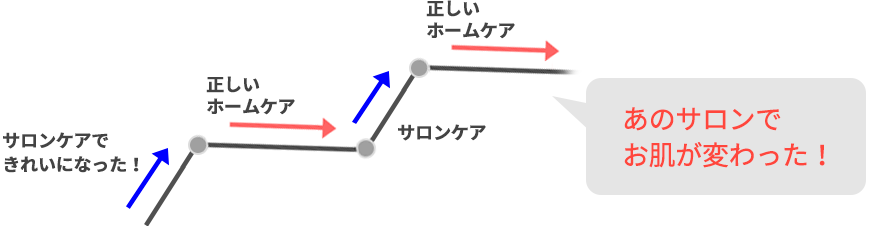 サロンでの施術に加え、ホームケアでしっかり維持していただくことができれば、来店のたびにお肌の状態がより良くなっていきます。これが本当に大切なカウンセリングなのです。